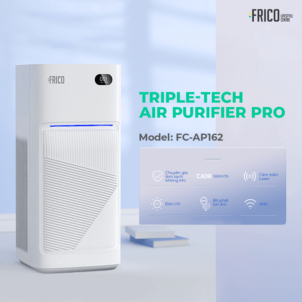 Với khả năng lọc mạnh mẽ, cảm biến PM2.5 theo thời gian thực, hệ lọc nhiều tầng kết hợp HEPA – than hoạt tính – UV và ion âm, máy lọc không khí 3 tác động Pro Frico FC-AP162 là lựa chọn phù hợp cho những gia đình chú trọng sức khỏe và chất lượng sống lâu dài.